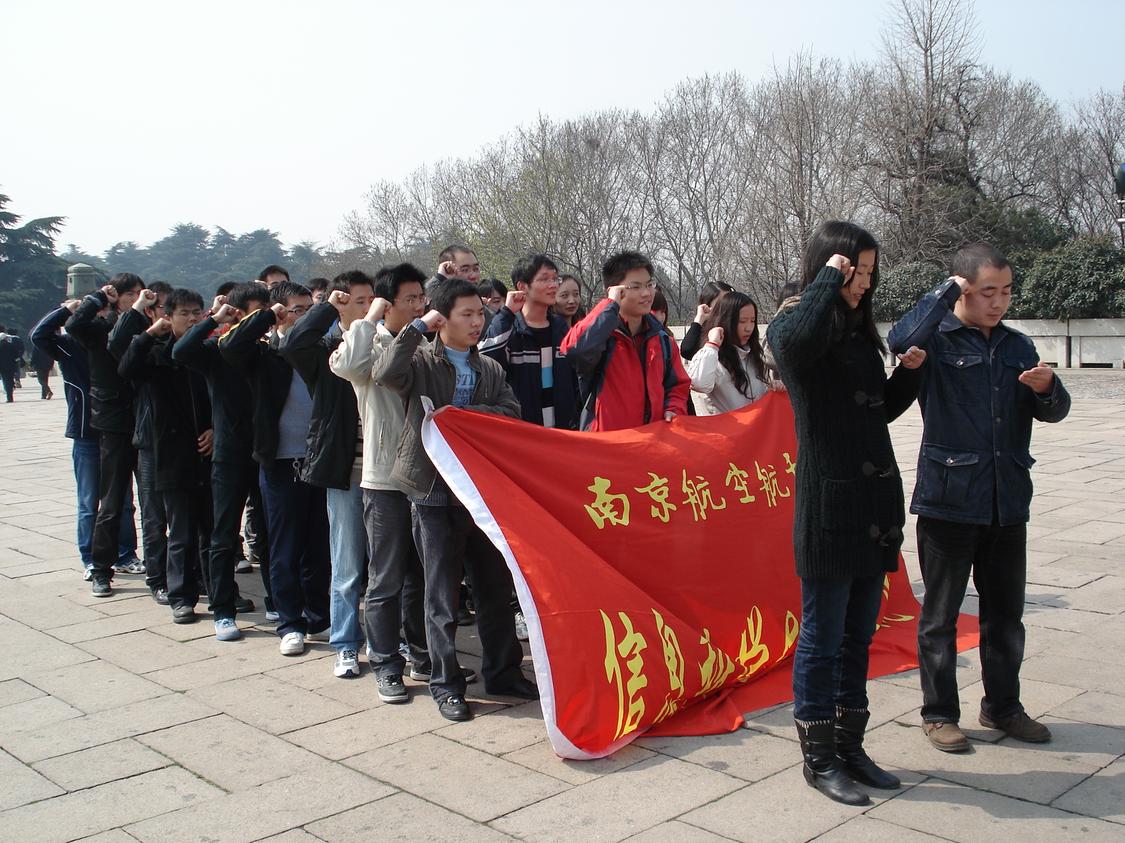 上午九点,在庄严肃穆的气氛下,支部党员向烈士敬献了花圈,全体默哀三分钟,并由支部书记魏利利和来自部队的向学敏带领大家重温宣誓词。同学们声音洪亮,饱含深情,表达了对革命先烈深深地敬仰和怀念之情。扫墓仪式结束后,支部组织部分党员参观了南京大屠杀纪念馆。