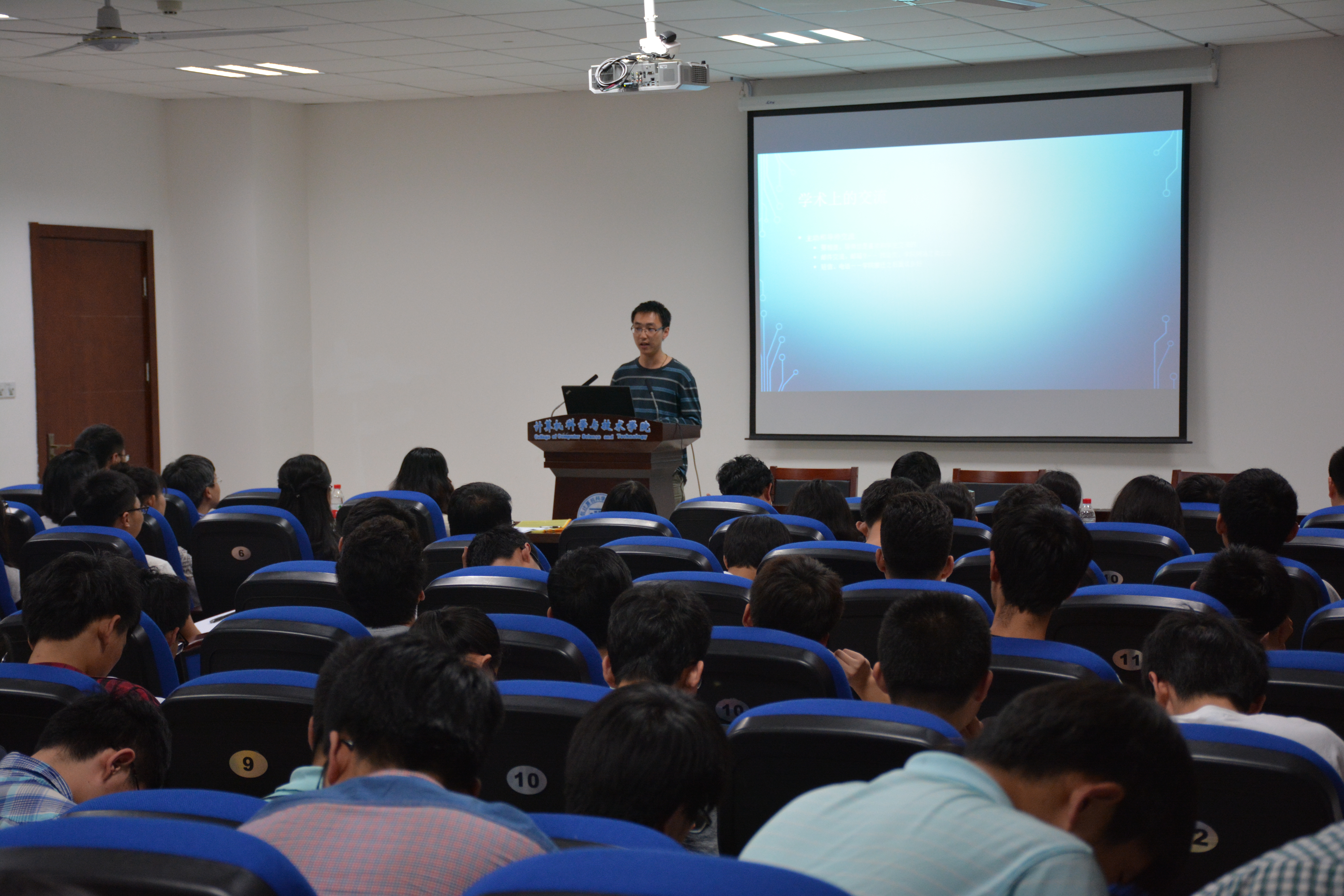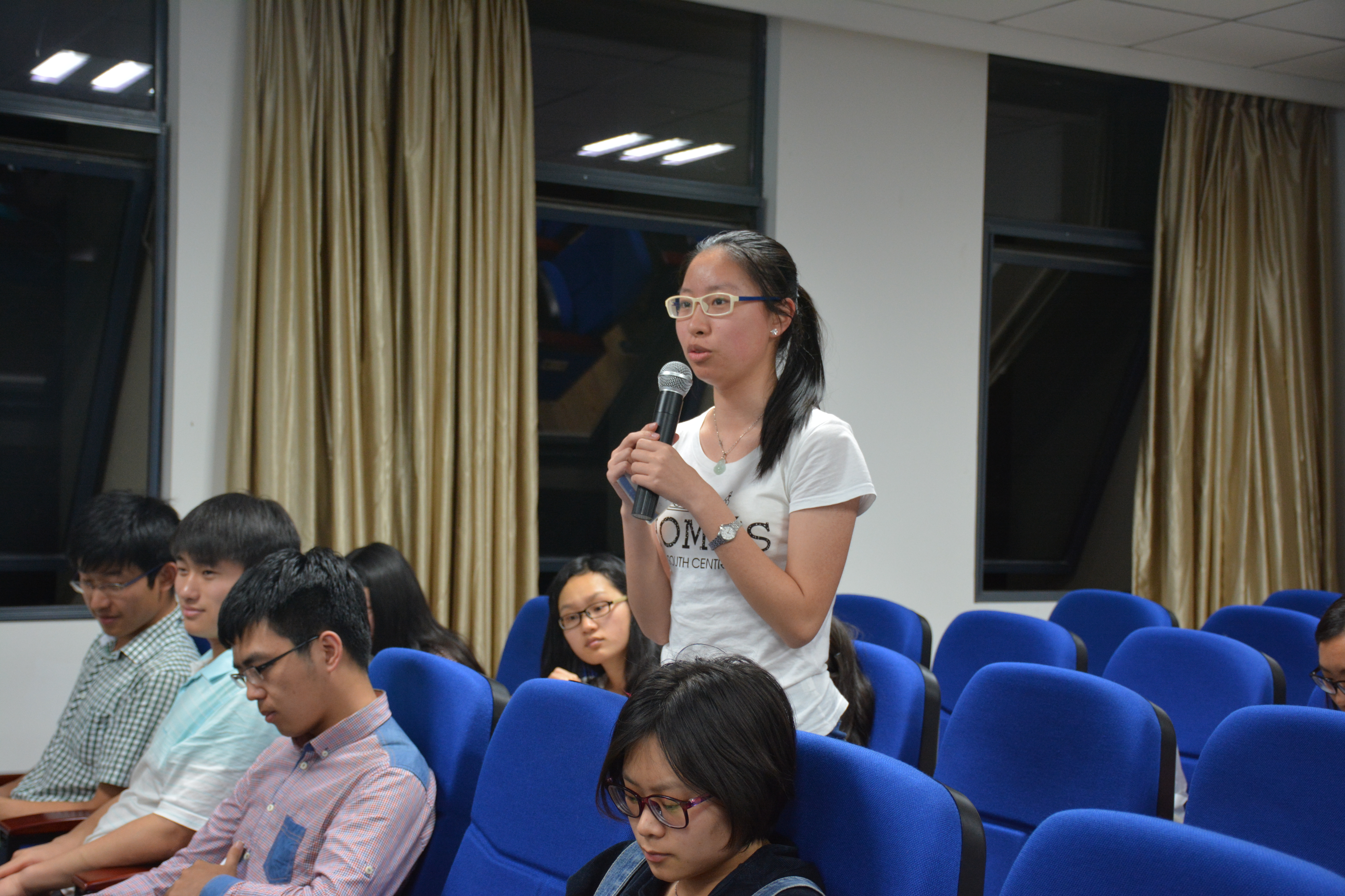 各研究所(中心)导师代表还在会上就各自研究所(中心)的研究方向、师资队伍等方面向在场学生做了详细介绍,也欢迎各位同学能和老师共同学习,提升自身水平。同时,学院邀请2012级学生侯俊鹏分享自身学习经历,他从如何确定导师、如何与导师交流以及本科生做学术研究的注意点分享了自身感悟。
