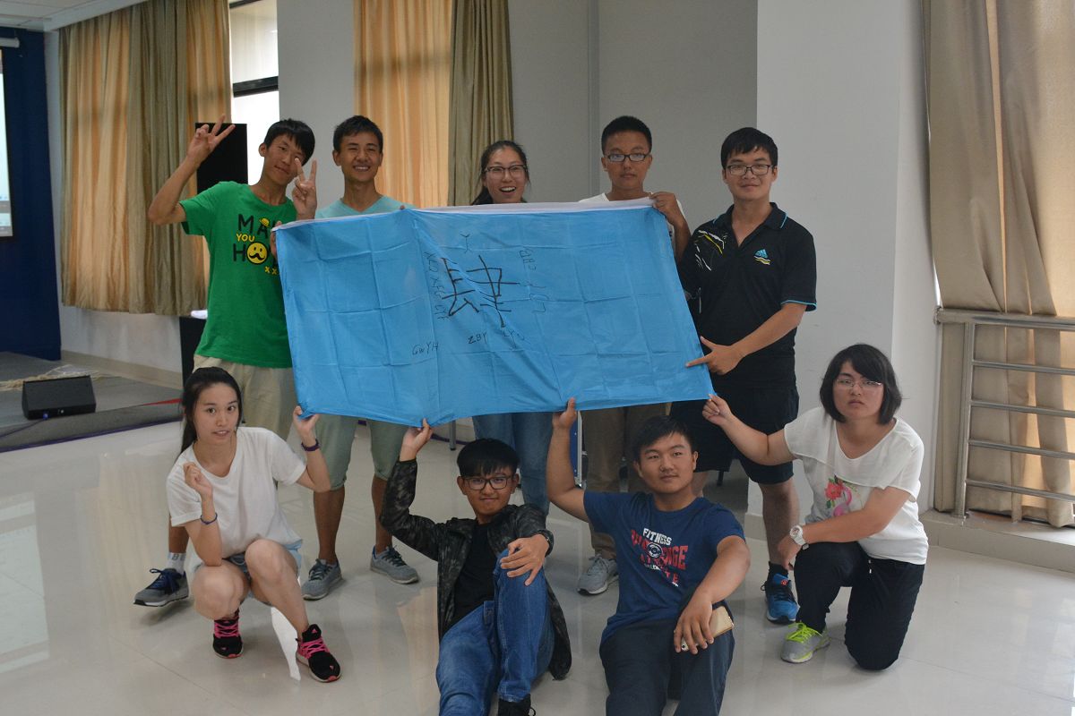 活动伊始,主持人要求全体学生干部分成五组,并在规定时间讨论出小组组长、名称、口号等,考验了同学们的沟通能力和协作能力。整个活动中五支队伍互相角逐,互相帮助,无形中增进了同学们之间的感情,增强了团队的凝聚力和战斗力。在穿绳过人的环节中,各个小组之间竞争激烈,所有人都在尽全力为小组成绩争强,激发了大家的集体荣誉感。在辨图排序环节中,各小组均发挥了小组的团队协作能力,所有人开动脑筋,力求胜利,直至后来小组与小组之间共同交流,互相分享信息,一起取得了不错的成果,体现了大家同舟共济、团结奋斗的精神。最后一个环节需要所有人平举双手持续十五分钟,要求不能有任何一人中途放下双手,若有人放弃,则其余人需要重新开始。同学们凭借着坚强的意志和互助的精神坚持了下来,伴随着音乐,活动在同学们的心得分享和辅导员的总结中落下帷幕。