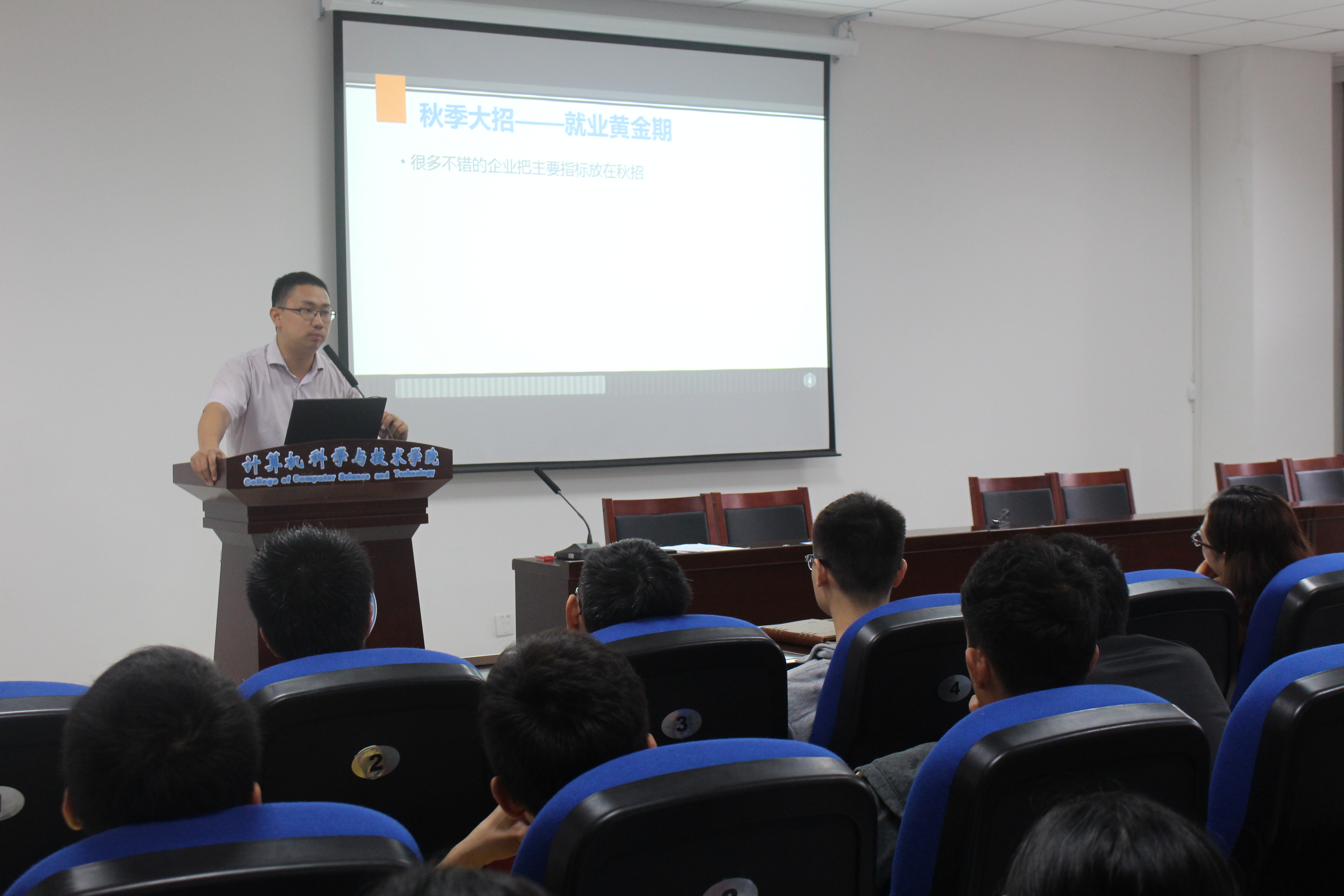 研究生辅导员刘彦辰对近期企业集中招聘的现状进行分析,希望同学们科学规划未来人生规划。他从往年就业季校园招聘的节奏入手,深入分析历届毕业生的就业率、求职岗位和薪酬待遇,引导同学们更加深入了解IT,互联网企业以及国防集团单位。