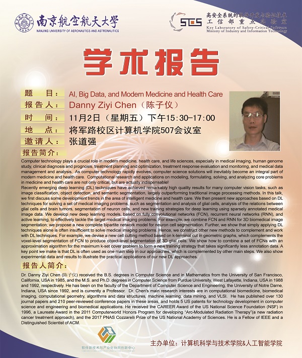 【学术报告】Danny Ziyi Chen(陈子仪):AI, Big Data, and Modern Medicine and Health Care
