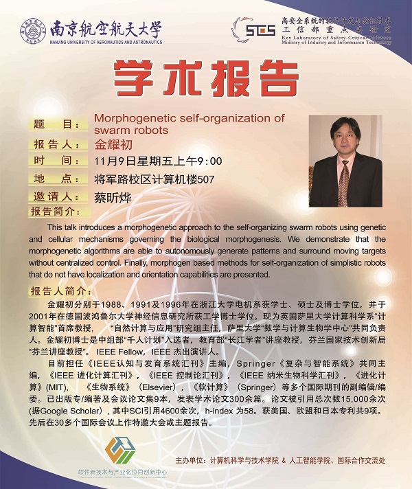 【学术报告】金耀初:Morphogenetic self-organization of swarm robots