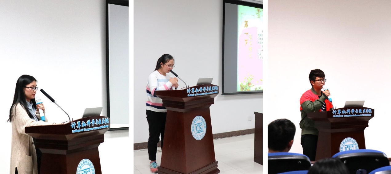 在“一支部一项目”的分享答疑环节中,学院团委邀请到三支校级立项支部为同学们做经验分享。首先为大家做分享的是1616102团支部。从16级开始,学校取消了机考,因而CCF成绩便成了计算机学院学生保研的一个重要参考标准。为了对接这一变化,1616102支部在一年前启动了“黑盒测试-CCF训练营”项目。1616102团支部书记何花同学围绕前期讲师招募、中期集中训练、后期反馈等环节详细介绍了该项目,通过该项目,班级参与CCF考试的人数和成绩都有明显提升,并还整理出了《机试常用方法与技巧》。最后,何花学姐给大一大二的团支书们提出了四点建议:项目选题要有创意、策划要考虑充分、不要随意更改策划、积极收集反馈,她还在现场发出邀请,希望有支部能够将这个项目继续传承下去。第二位分享的是1617201支部的黄梦诗同学,她的项目主题是“用双脚丈量土地-南京足迹”,以出游的形式了解南京历史、美食和文化,并制作出了几十张总结手账,最后集成纪念相册。黄梦诗同学建议同学们要能够在项目中积累成果、有所收获,她还强调,开展项目一定要想到项目的可行性,保证项目能够顺利的开展下去。最后做分享的是1617302支部的龙睿涵,他们以光阴的故事为主题,拍摄南航系列纪录片,将纪录片分为食堂文化、历史人物、学生生活三个部分,为我们讲述了一个找回初心的故事。