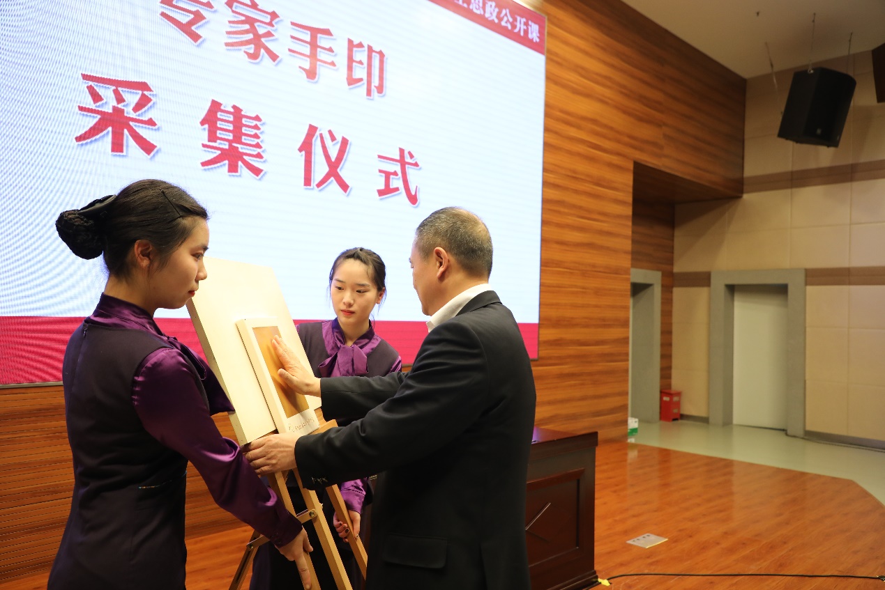 公开课在视频《爱国奋斗·南航担当》中拉开帷幕,通过一幕幕画面,生动展现了一代代南航人在国家发展中的时代担当。随后,黄志球代表学校为梅宏颁发了“爱国·奋斗”南航思想政治工作首席专家聘书。在思想政治工作首席专家的手印采集仪式上,梅宏郑重地按下手印并签名。这一枚珍贵的手印,也将被永久珍藏在校史馆中。
