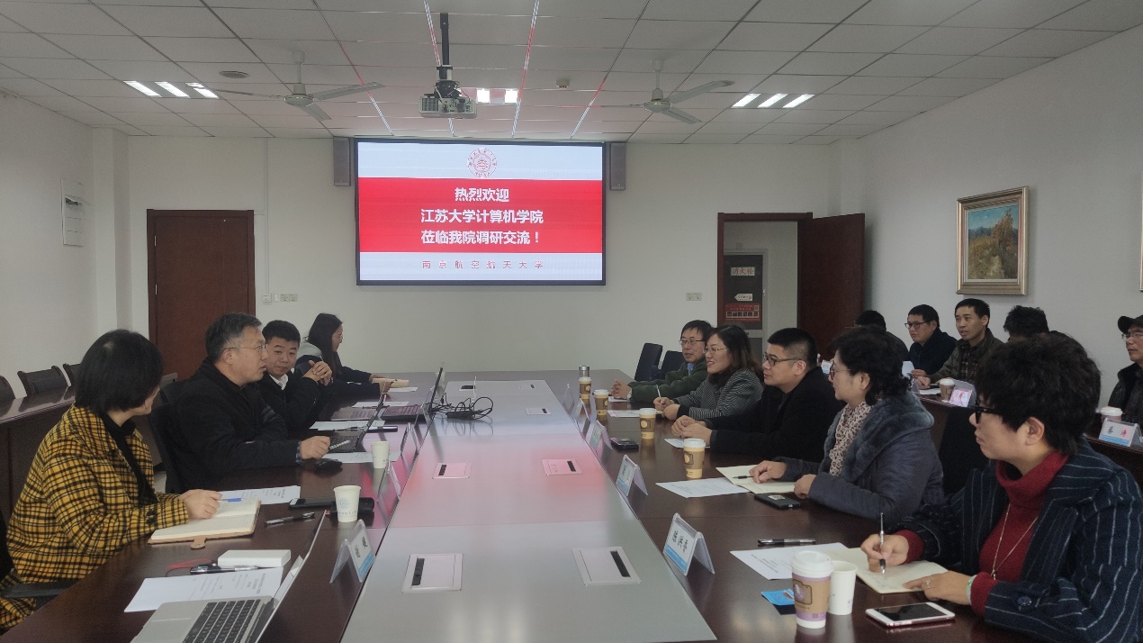 首先,陈兵教授代表Betway体育西汉姆联/人工智能学院介绍了学院整体情况。他从学院的师资队伍、人才培养、科学研究、学科规划等方面对学院情况进行了全面的介绍。接下来,王院长介绍了江苏大学计算机学院情况及调研背景。双方主要就人才培养方案以及专业认证工作进行了自由的交流讨论。