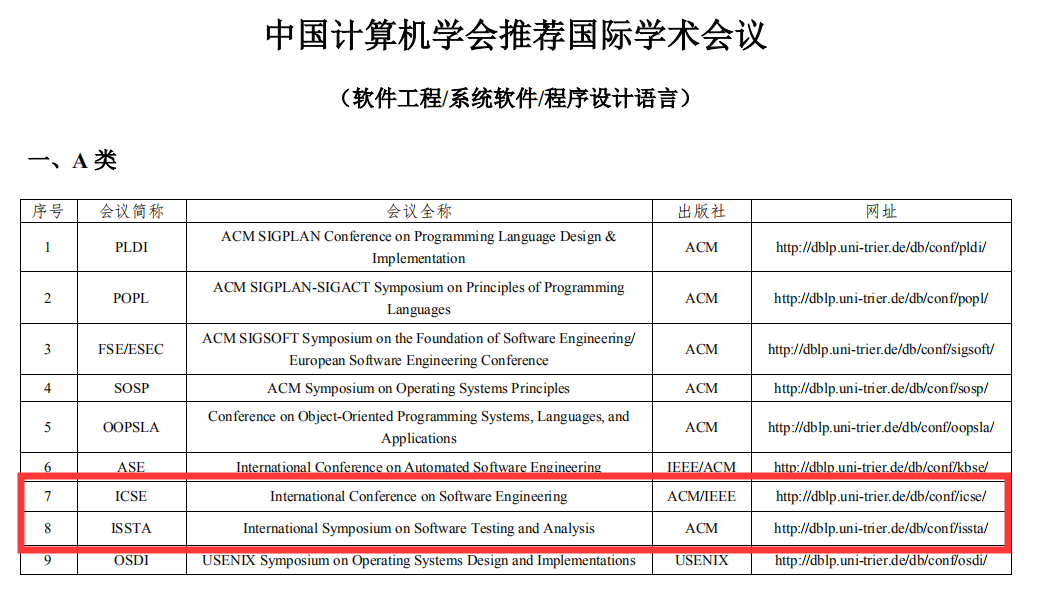 TSE全称为IEEE Transactions on Software Engineering,TOSEM全称为ACM Transactions on Software Engineering Methodology是国际公认的软件工程领域最高水平的两个学术期刊(CCF A类期刊),遵循严格的同行评审制度。