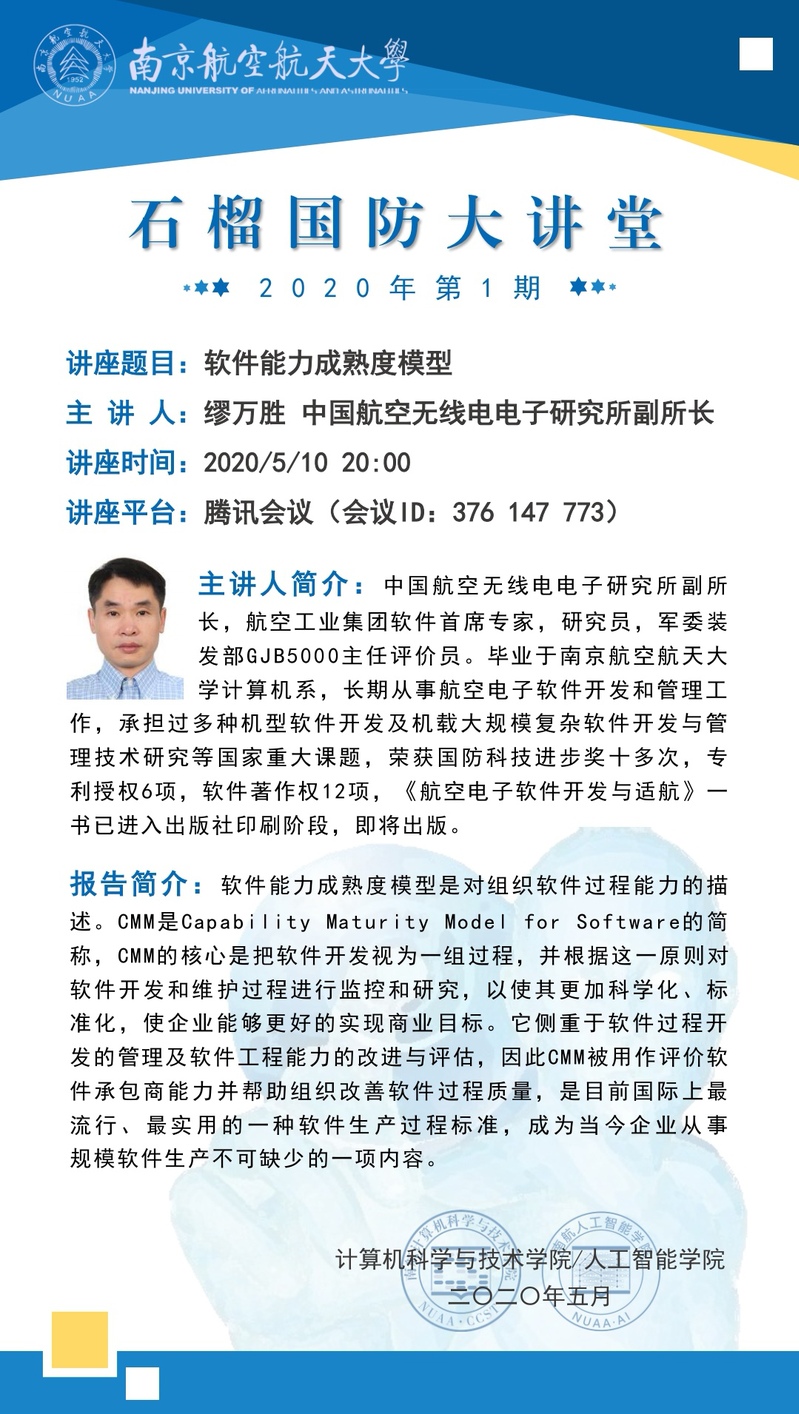 【石榴国防大讲堂】缪万胜:软件能力成熟度模型