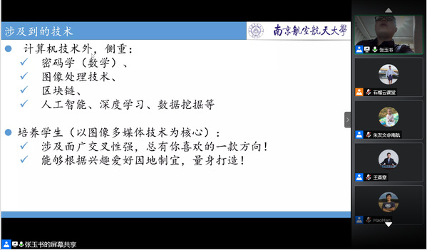 5月22日晚,Betway体育西汉姆联/人工智能学院成功举办第三期“专业领航”石榴云课堂,学院网络与信息安全研究所的张玉书、韩皓、朱友文和软件研究所的王森章四位老师为近200名本科生云端领航,助力成长。本期云课堂由张玉书主持。