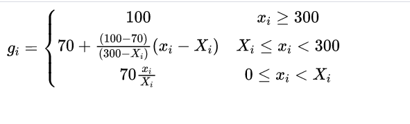 y1=(N1×30%+N2×30%+N3×40%)*10+50