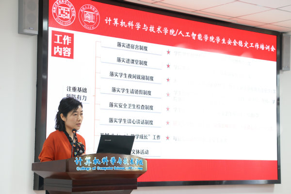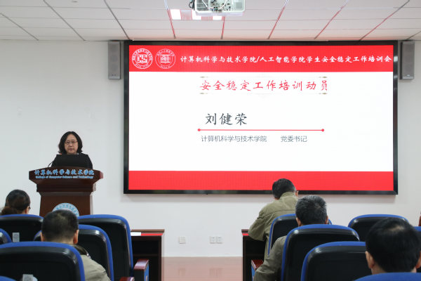 首先,学院党委书记刘健荣作培训动员。她以疫情给人们生活带来的影响和当前高校面临的形势为切入点,结合学院实际情况,强调了学生安全稳定工作的重要性,号召全院教职工加强责任意识、讲求工作方法,提升工作技能、妥善应对问题,关注特殊群体、增强工作联动,以实际行动为学生安全稳定贡献力量。