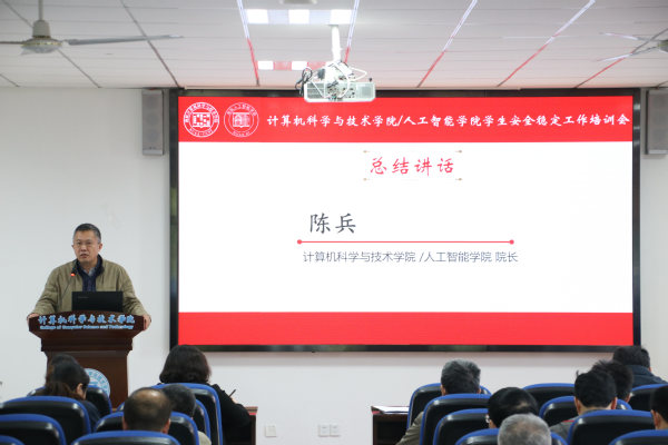 最后,院长陈兵作总结讲话。他再次强调了学生安全稳定工作的重要性与必要性,要求全体教职工一要强化责任意识,扎实做好学生安全稳定各项工作,为学院的人才培养和建设发展提供保障;二要增强担当精神,将安全稳定工作落实落细,做到感知到位、传输到位、处理到位,尽最大努力预防安全稳定问题的发生。