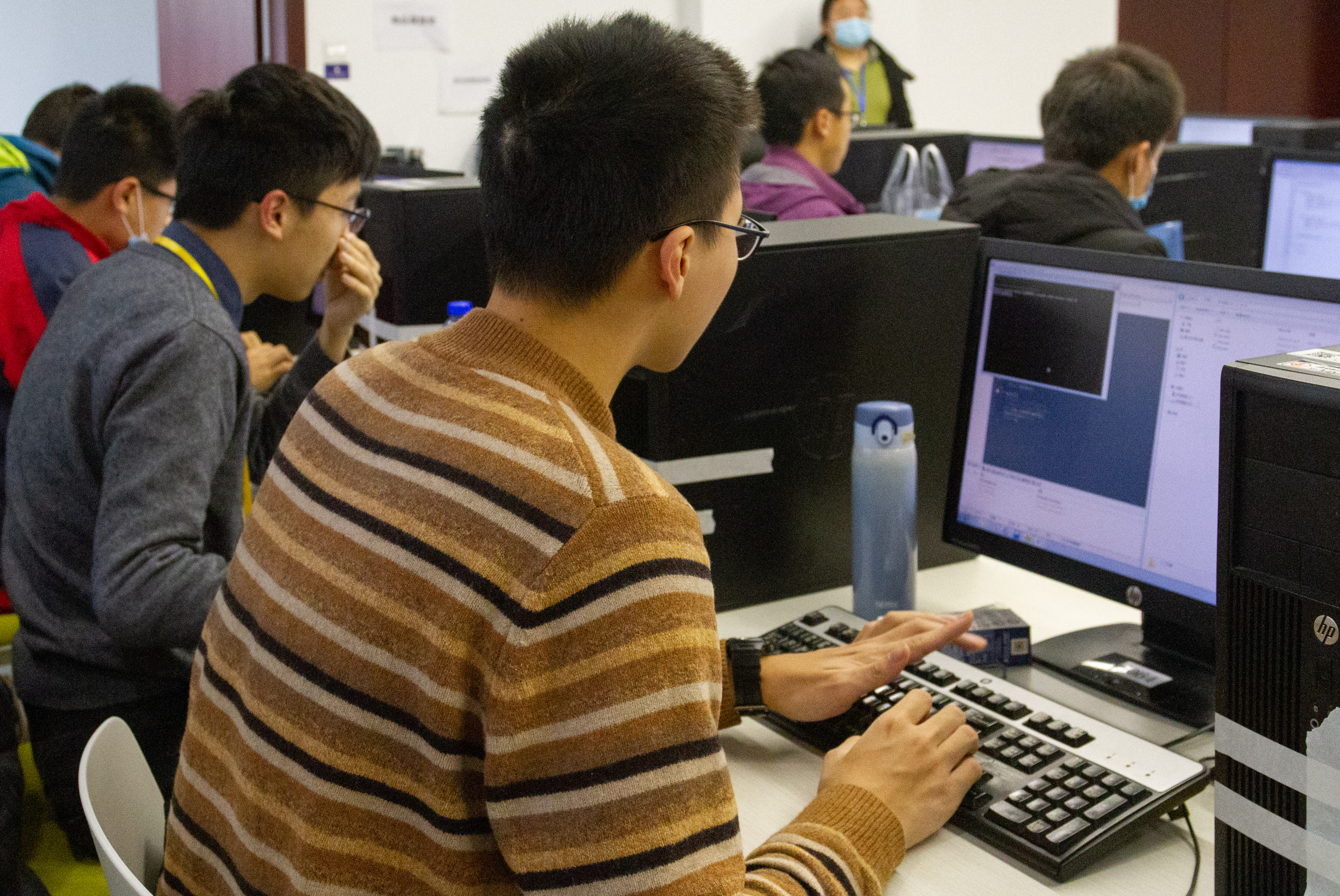 为保证联赛顺利进行,工作人员提前反复调试设备、布置考场,并安排了安保、医务等保障性工作,确保联赛的正常举行。为将疫情防控落实到位,我校安排了专人负责联赛期间的医疗保障和环境消毒工作,联赛当天,所有的参赛同学及领队教师均凭身份证刷卡步行进入校园,并现场核验前14天行程和体温状况。