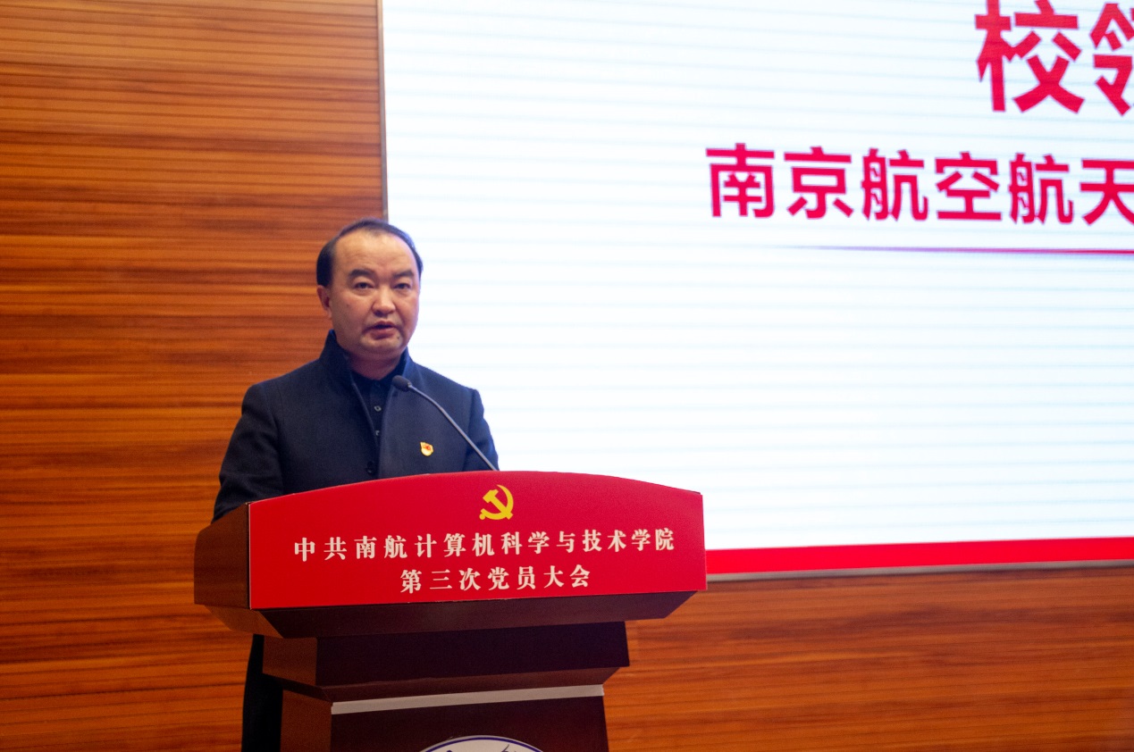 校党委副书记陶勇代表学校党委向大会的召开表示热烈祝贺。他对五年来学院党委取得的成绩给予充分肯定,同时对学院今后的工作提出三点希望:一是要坚持和加强党的全面领导,认真践行“两个维护”,深入推进全面从严治党,更加扎实地把学校党委的决策部署落到实处;二是要不断提升学院治理能力,运用科学的思维方式和工作方法,全面加强学院治理体系和治理能力建设;三是要始终坚持改革创新引领,以“双一流”建设为抓手,以“十四五”规划编制为契机,强化改革创新这一根本动力,立足国防与“三航”特色,不断深化学科内涵建设,努力建成高水平研究型学院。