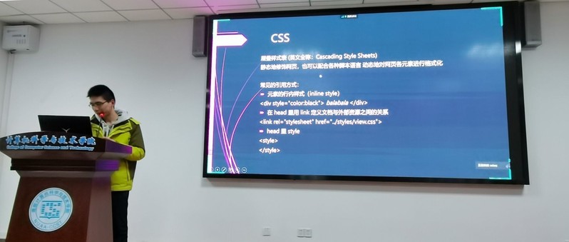 接着,黄智杰重点介绍了HTML基础语法,他以自身的博客为载体,运用HTML操作页面,耐心细致地进行了演示讲解。他用通俗易懂的语言讲解了文本格式化、图像链接、表格、块、类、网页布局、框架、嵌套、脚本CCS等基础内容,引发了学员们的思考与互动。