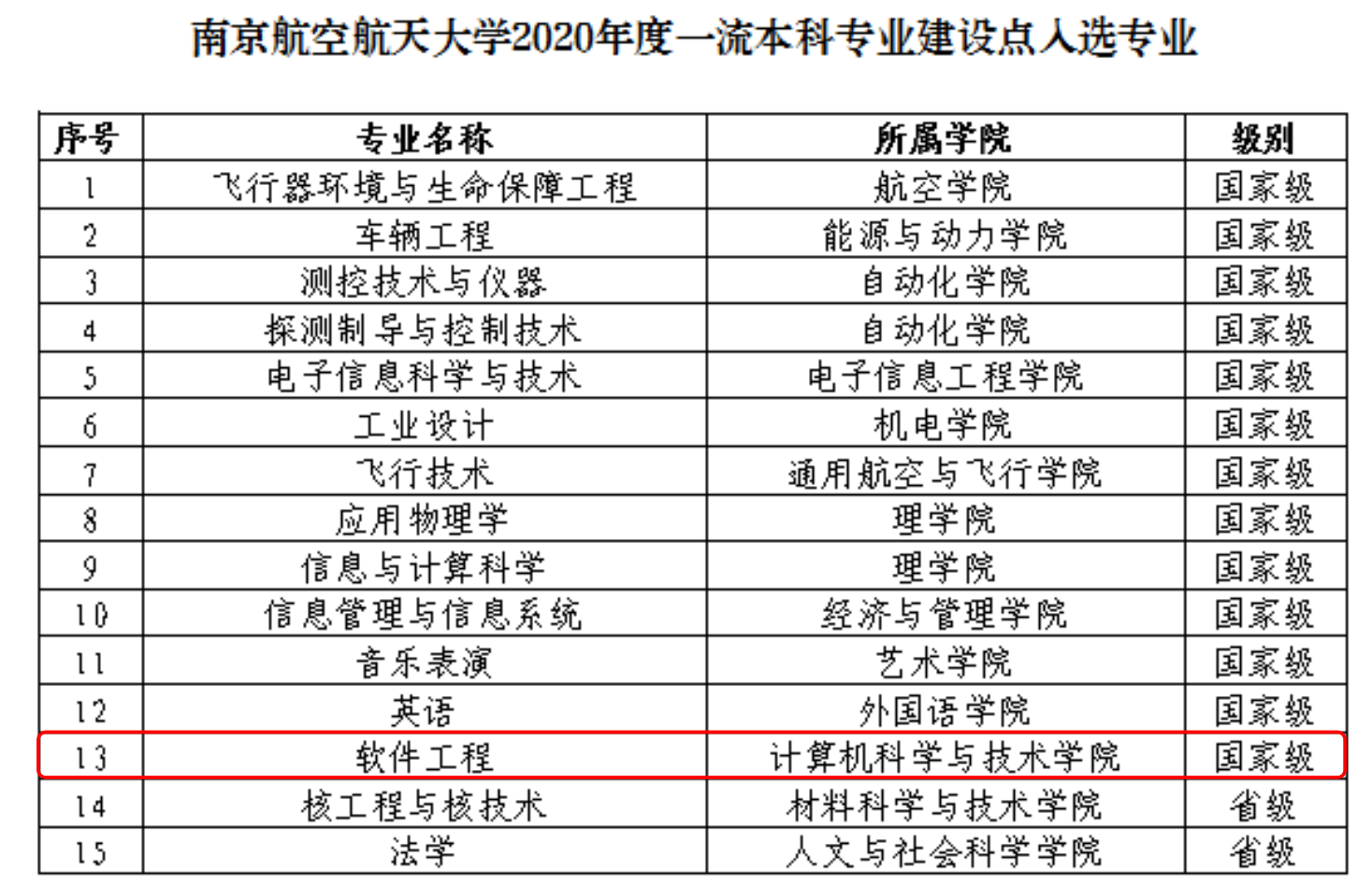 近日,教育部办公厅发布了《关于公布2020年度国家级和省级一流本科专业建设点名单的通知》(教高厅函〔2021〕7号),学校限额申报的15个专业全部入选一流本科专业建设点;其中,我院软件工程专业入选国家级一流本科专业建设点。