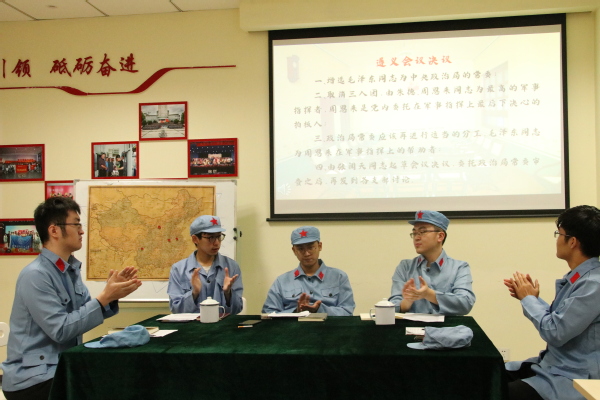 首先,团支部成员通过演绎话剧《遵义会议》将在场师生的思绪带回到1935年的贵州遵义,在热烈的会议历史重现中翻开百年党史,回顾峥嵘岁月。