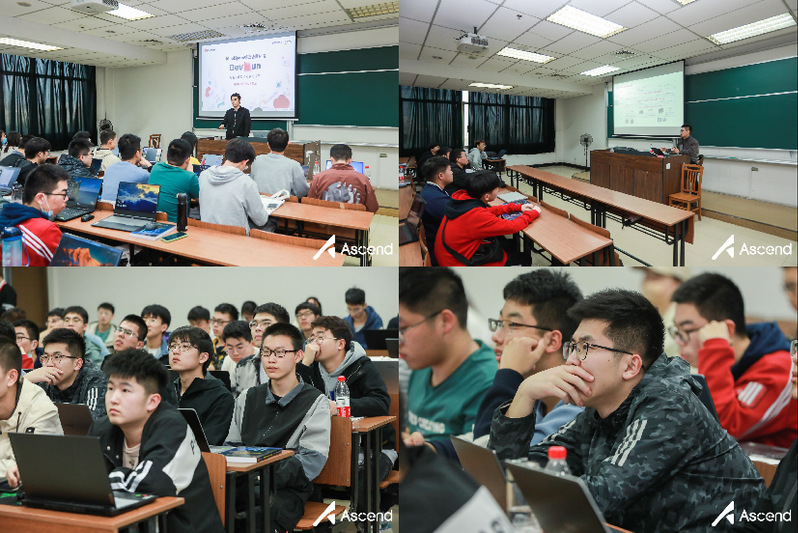 在MindSpore和CANN训练营环节,同学们人手一台笔记本电脑,在华为专家的指导下,通过动手实操,体验了基于MindSpore框架端边云流程开发的AI应用以及华为AI异构计算架构的应用开发方法。精心设计的训练营以其独创的模式,让学生在轻松的氛围中体验开发乐趣,学习业界经验。