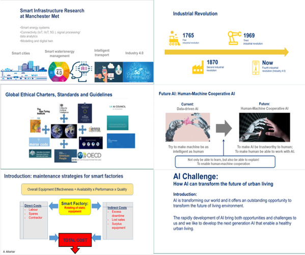 Carl Diver博士和Bamidele Adebisi教授以《弥合工业4.0技能鸿沟,实现创新、增长和业务转型》为主题,向学生讲解了智能能源系统、5G、物联网等技术的发展现状;Keeley Crockett教授以《合乎道德的重要性——建立可信赖的人工智能》为主题,讲述了人工智能技术发展与伦理道德的关系;Yonghong Peng教授以《人工智能的未来——建立人工智能,增加人类自主权》为主题,向学生讲述了未来人工智能技术对社会和经济发展等领域的重大影响;Alhussein Albarbar教授以《智能工厂的可持续和有效维护策略》为主题,向学生展示了在工业4.0背景下智能工厂的发展;Lubomira Tosheva-Jivkova博士以《沸石及其在改善生活质量中的各种应用》为主题,向学生展示了沸石在日常生活中的重大应用,拓宽了学生知识面。