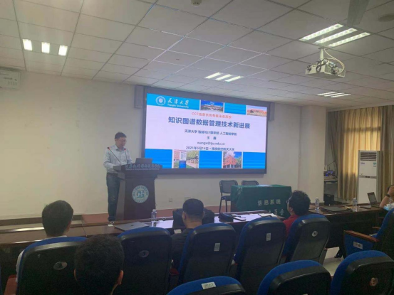 会上,王鑫教授以《知识图谱数据管理技术新进展》为题,以知识图谱的发展概述、数据模型、存储方案、查询处理四个部分,由浅入深地介绍了知识图谱数据管理方法与技术的最新进展,完备详细地介绍了迄今以来各种知识图谱的存储方案,通过知识图谱可视化查询系统演示,生动说明了知识图谱中的查询过程,并在最后对知识图谱数据管理的未来研究方向进行了展望,为在场的老师与同学带来了新的启发与思考。