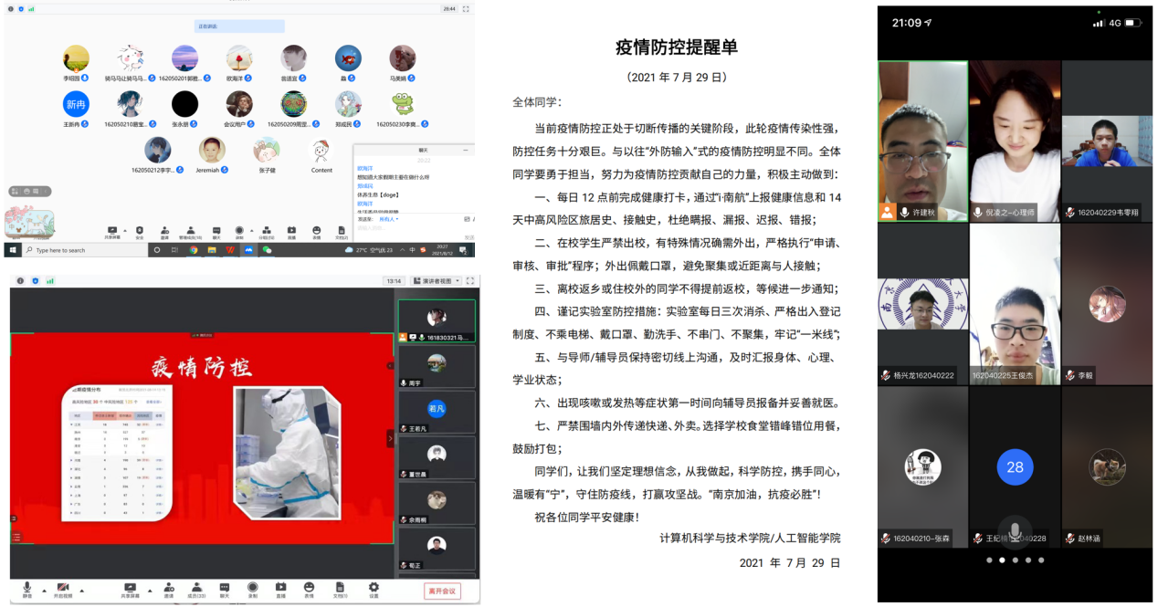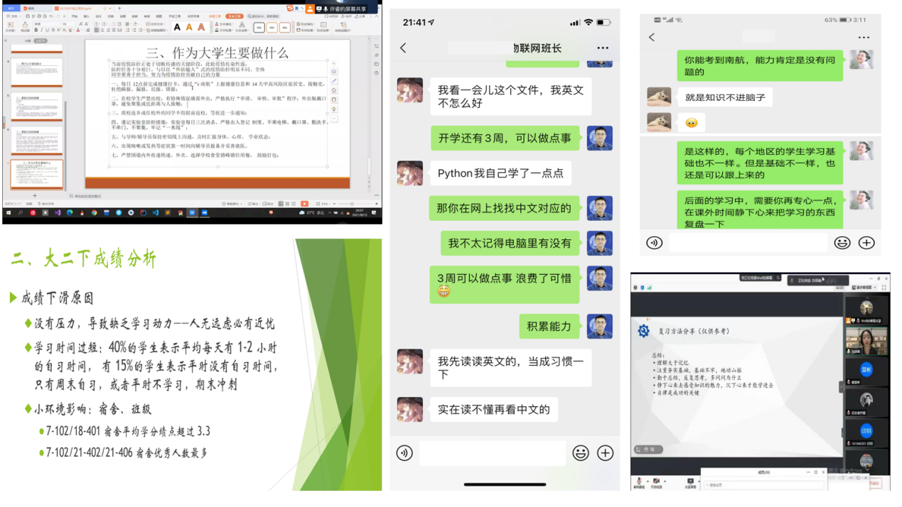 暑假期间新冠疫情的突然反弹,打乱了许多师生的学习生活计划。为了让学生们明确目标,调整心态,Betway体育西汉姆联组织全体本科生班主任立足于学生成长特点和阶段性学习需要,结合当下的疫情防控教育,积极开展“云端”班会,涉及3个年级38个班级,实现在校本科生全覆盖,促进学院学风建设工作质量提升。