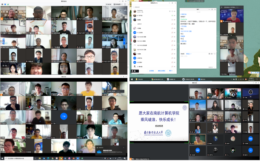 由于疫情,今年的开学季姗姗来迟,第一次的见面会班主任和新生只能在云端开展。为了让同学们更好地规划大学生活,尽快适应线上学习和即将到来的校园生活,学院2021级班主任老师开学初紧锣密鼓地召开新生云端班会,激励同学们披荆斩棘,一往无前。第一次云端班会中,各班班主任首先引导同学们纷纷进行自我介绍。在彼此的介绍中,同学们结识到了老乡,结交到了志趣相投的朋友,增强班主任和同学之间的了解。在班会中,有的班主任讲述他们的大学经历来激励同学们负重奋进,志在超越;有的班主任针对班级爱玩游戏的男生,讲述游戏与计算机科学与技术内在的关联性,激励同学们成为一个游戏开发者。每位班主任热切关怀着每一位学生,耐心和细心地为他们解决学习和生活上的困惑。这些细小的分享和分担,让同学们倍感“家”的温暖。