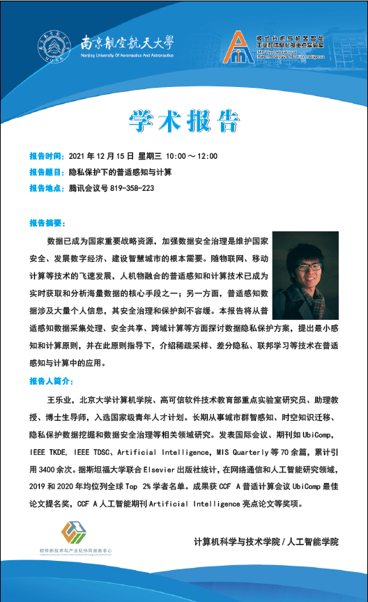 【石榴大讲堂】隐私保护下的普适感知与计算