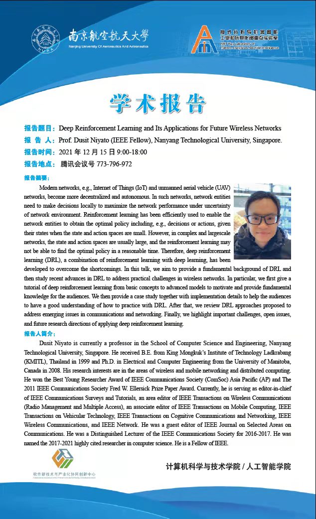 【石榴大讲堂】Deep Reinforcement Learning and Its Applications for Future Wireless Networks