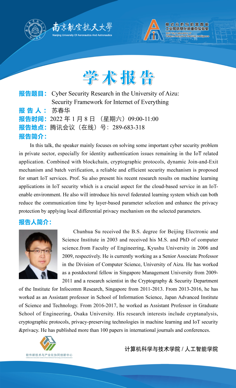 【石榴大讲堂】Cyber Security Research in the University of Aizu: Security Framework for Internet of Everything
