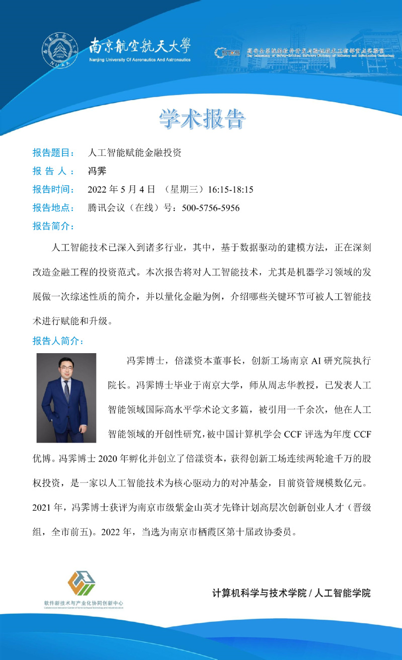【石榴大讲堂】人工智能赋能金融投资