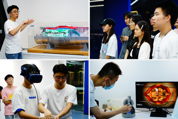 随后,同学们来到计算机学院实验楼,参观模式分析与机器智能工信部重点实验室,并在研究生学长的指导下,通过VR设备了解发动机决策系统,直观地感受计算机技术在不同领域的应用。同学们对实验表现出极大的好奇心,并向学长提出疑惑,在你问我答的过程中,之前停留在书本和网页上的前沿科技一点一点被揭密。