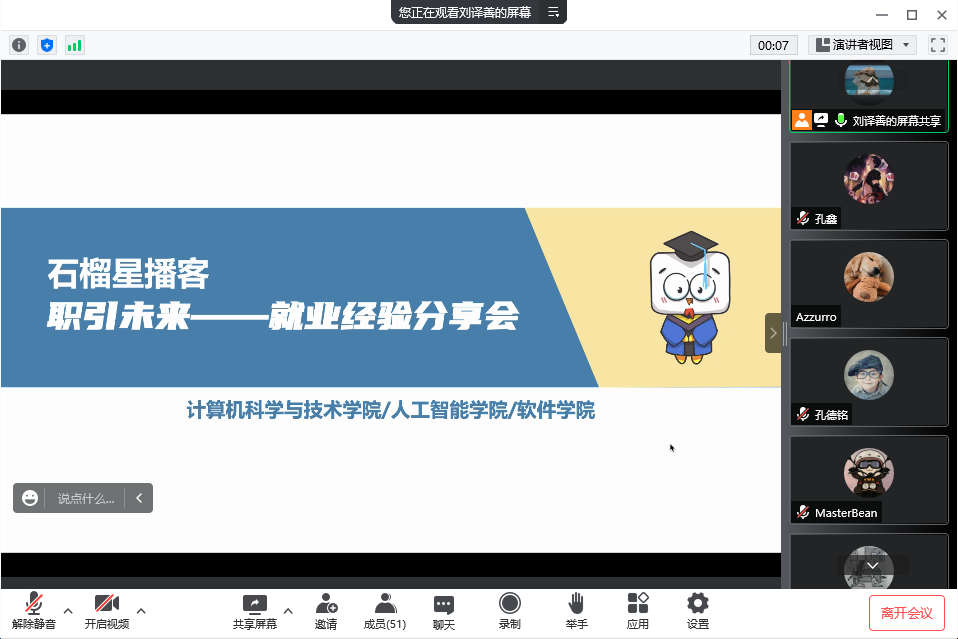 本次分享会给予了同学们与优秀榜样学习交流互动的机会。后期学院还将充分利用各方资源,汇聚育人合力,进一步推动研究生稳步快速、高质量就业。