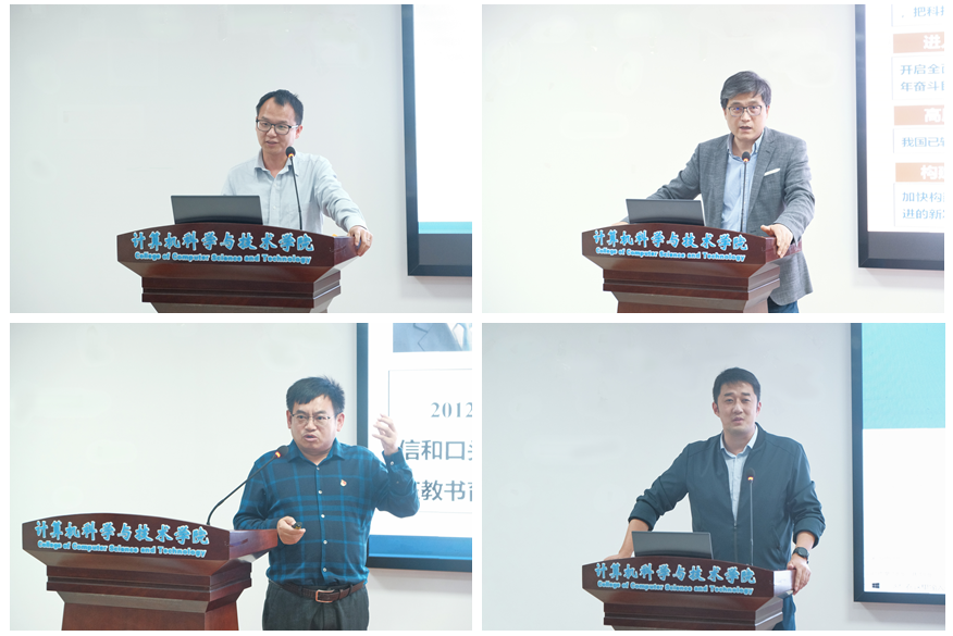 副院长燕雪峰结合自身十余年的国防科研经历,作了“有组织的国防科研”主题报告。他从瞄准国家重大需求、解决装备卡脖子问题、打造国之重器的使命担当出发,阐述了加强有组织的国防科研的重大意义;具体介绍了国防科研体系、不同项目类别及其特点、申报途径等。他强调,学院将进一步加强有目标、有侧重、精准化的科研发展规划,希望各位老师找准方向、转变思路、沉浸其中、积累经验,用汗水成就国防梦。