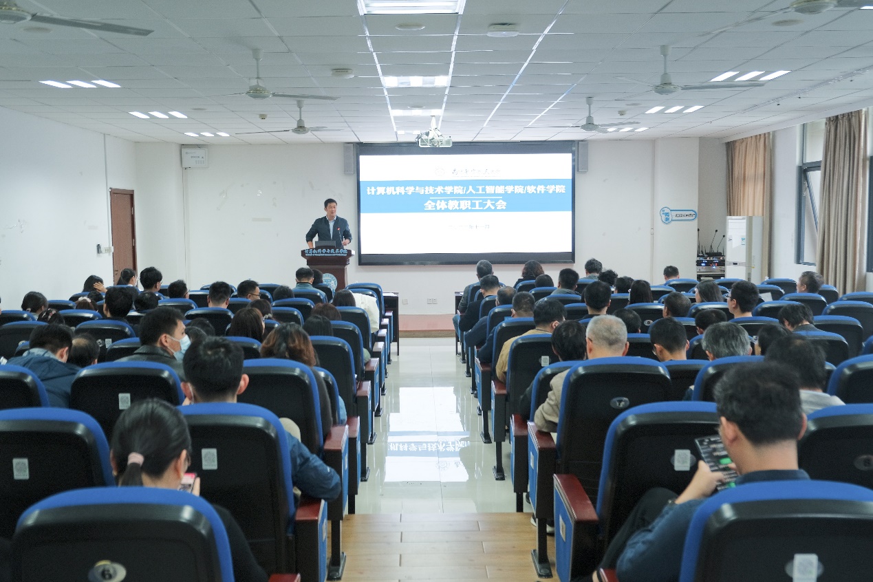 11月8日,Betway体育西汉姆联/人工智能学院/软件学院召开全体教职工大会,传达学习学校相关会议精神,盘点2022年学院重点工作,通报了教学、科研、学生管理等方面的情况,重点围绕“有组织科研”进行了专题培训。学院全体教职工参加会议,会议由学院党委副书记王宁主持。