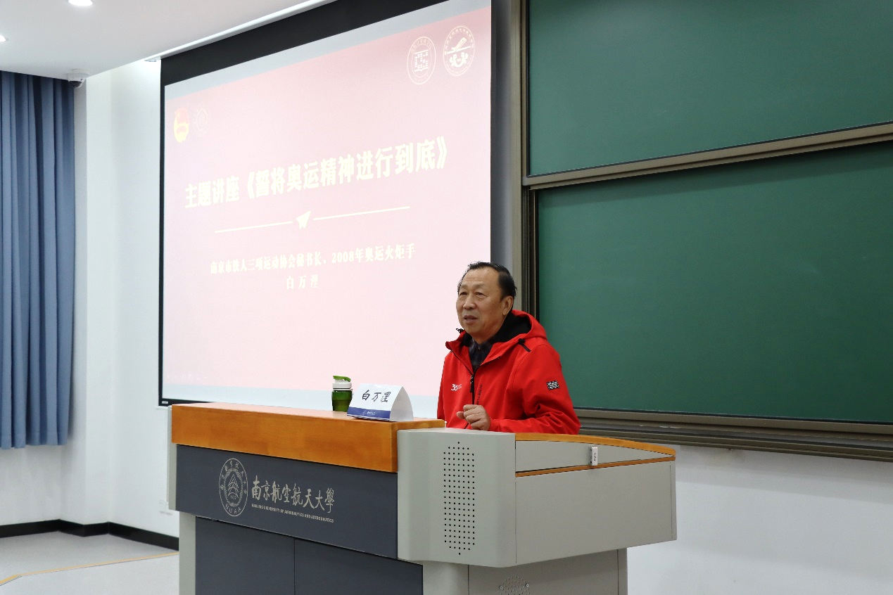12月11日,Betway体育西汉姆联和民航学院在天目湖校区牧星楼T2103教室联合举办“誓将奥运精神进行到底”信仰公开课。本次信仰公开课由南京市铁人三项运动协会秘书长、2008年奥运火炬手白万浬主讲,两学院辅导员及学生共同参加,活动由计算机学院辅导员胡朋主持。