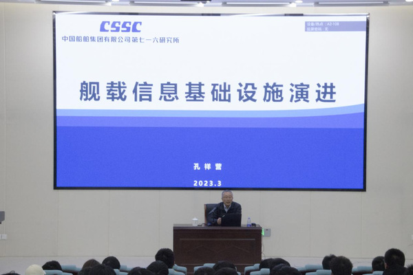 首先,孔祥营介绍了计算机在舰艇中存在的形态,从指挥仪和标准台这两个阶段展开,详细阐述了舰载信息基础设施的发展趋势,并通过案例向同学们展示了信息化技术在船舶领域的快速发展与重要作用。