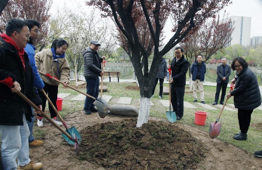 报告会前,王怀民与师生代表共同在砚湖边院士林培土、围堰、浇水,并与师生合影留念。会后,王怀民还参观了计算机学院模式分析与机器智能实验室、高安全系统的软件开发与验证技术实验室。