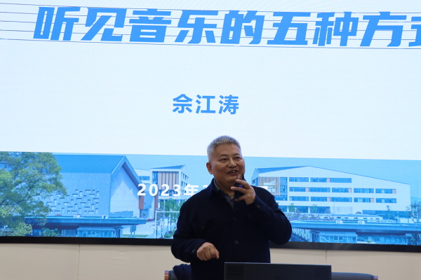 讲座伊始,佘江涛从听见音乐的三个阶段出发,结合自己欣赏音乐的实际经历和真实感受,描述了听见音乐的五种方式。他强调,音乐已经成为永远和当代共生融合、充满活力、不可分割的东西,个人在阅读和聆听时需要融入情景,通过耳朵和心灵,听见不同层次的音乐,以形成对音乐的感受、品鉴、理解能力。