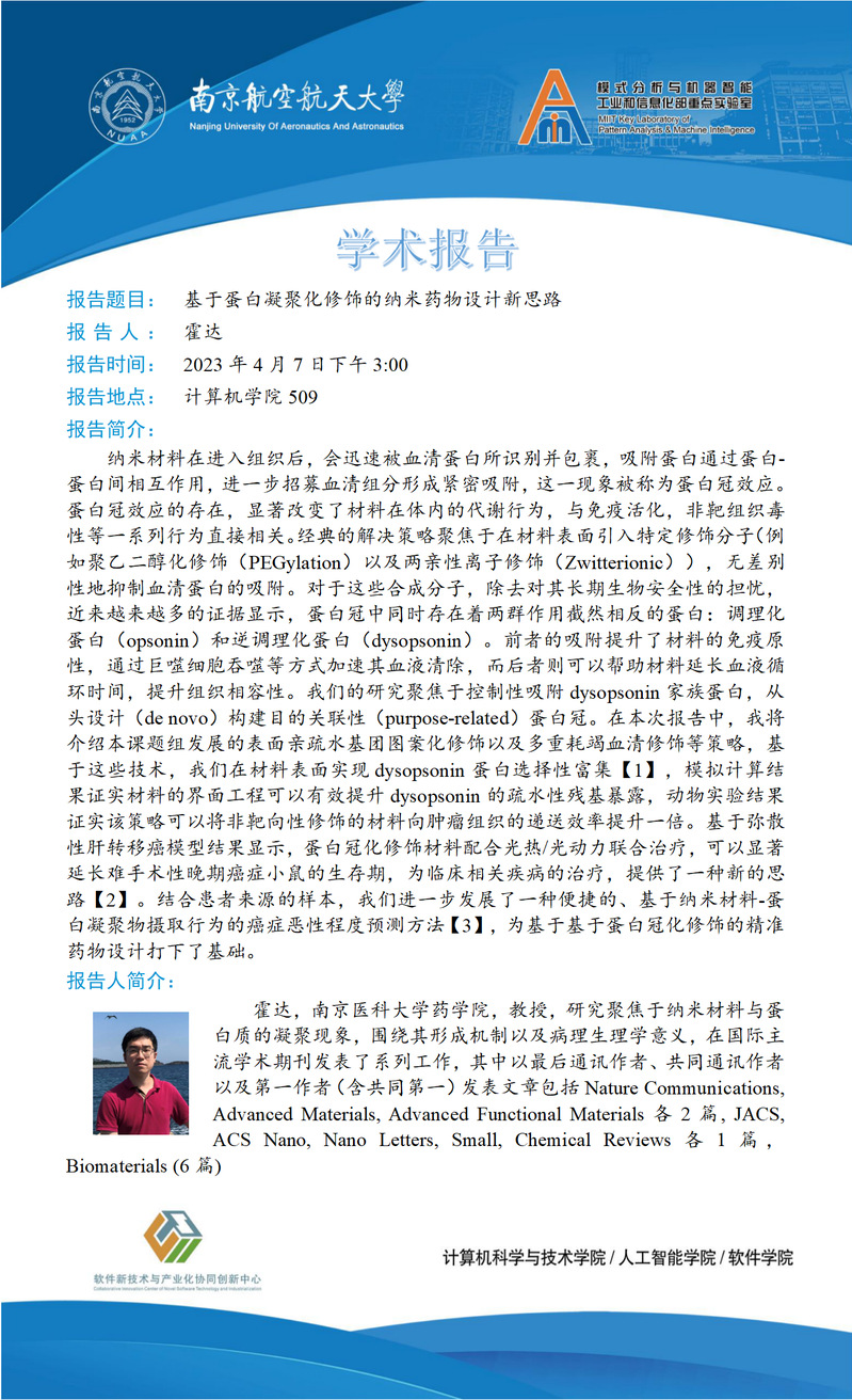 【石榴大讲堂】基于蛋白凝聚化修饰的纳米药物设计新思路