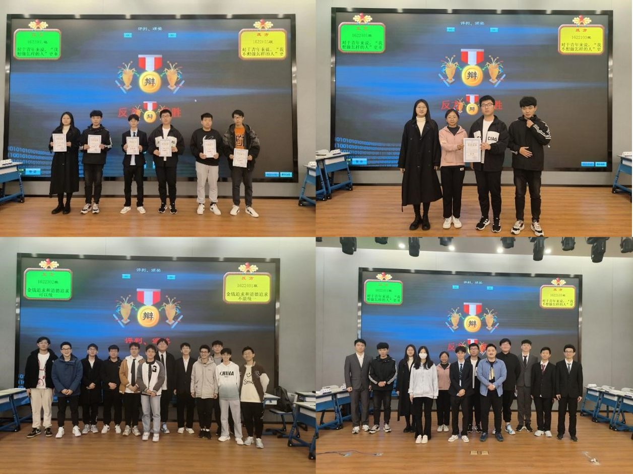 经过评委们认真地点评和讨论,来自1622103班的正方代表队荣获总决赛冠军,1622401班的杨宙升同学荣获本场比赛最佳辩手。