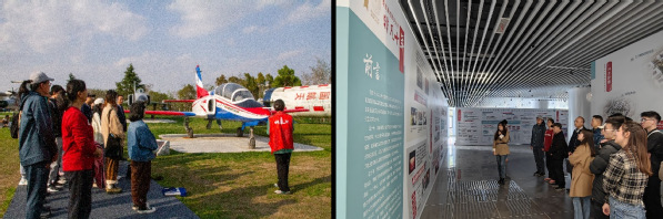 第一站师生党员们一同前往参观御风园。御风园是我校航空航天教育教学实践基地以及“传承红色基因、赓续蓝色梦想”的思政育人新平台。在志愿者的耐心讲解下,全体党员同志近距离接触国之重器,沉浸式学习感受我国航空航天事业的发展成就,深刻领悟学校在“为党育英才,为国铸重器”事业上做出的重大贡献。