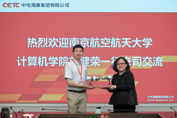中电海康集团人力资源部总经理汤敏贤、招聘部副主任李嘉淇、52所所长助理杨佳东等带领学院一行在园区展厅内参观,通过体验国防前沿科技产品和参观企业展厅,参与老师们感受了中电海康的迅猛发展和创新成果。随后,双方进行了座谈交流。