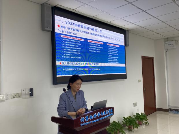 会上,燕雪峰对郑祥明一行的到来表示热烈欢迎,感谢研究生院长期以来对学院工作的大力支持。接着,培养处周晓蓉向在座的老师介绍了当前研究生院工作的总体情况及2023年的重点工作,她从优质教学资源建设、拔尖人才培养、专业学位培养模式改革、培养方案修订和课程管理质量提升五个方面对研究生教育提出了新要求和新办法,细致解读了相关的政策文件,对学院研究生培养工作进行了详细指导。