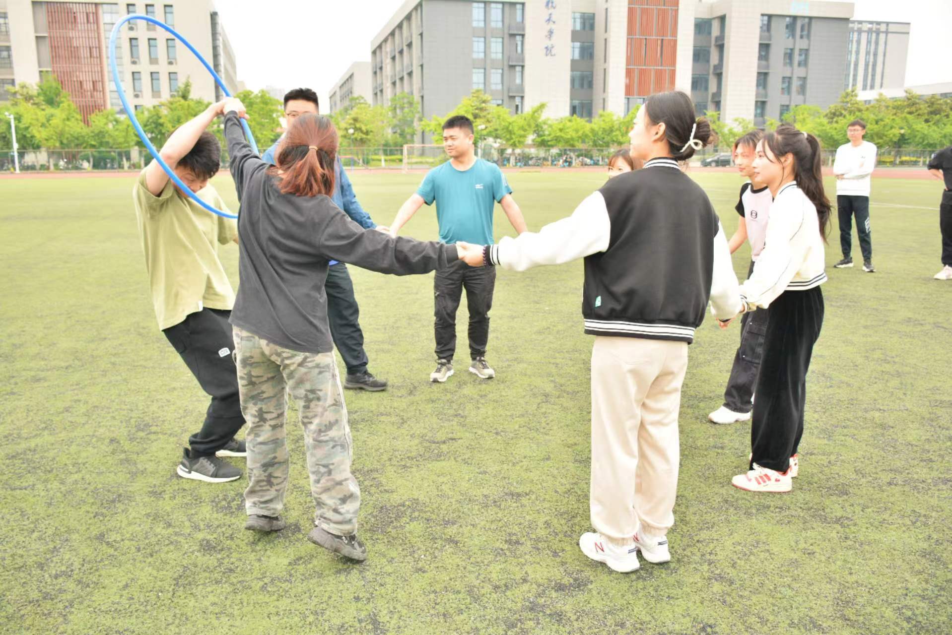 第二项 “导学同心接力跑”。一根接力棒在学生和导师的手中传递,象征着团队合作和信任。选手们奋勇拼搏,紧握接力棒,迅速传递给队友,以最快的速度完成接力赛跑。