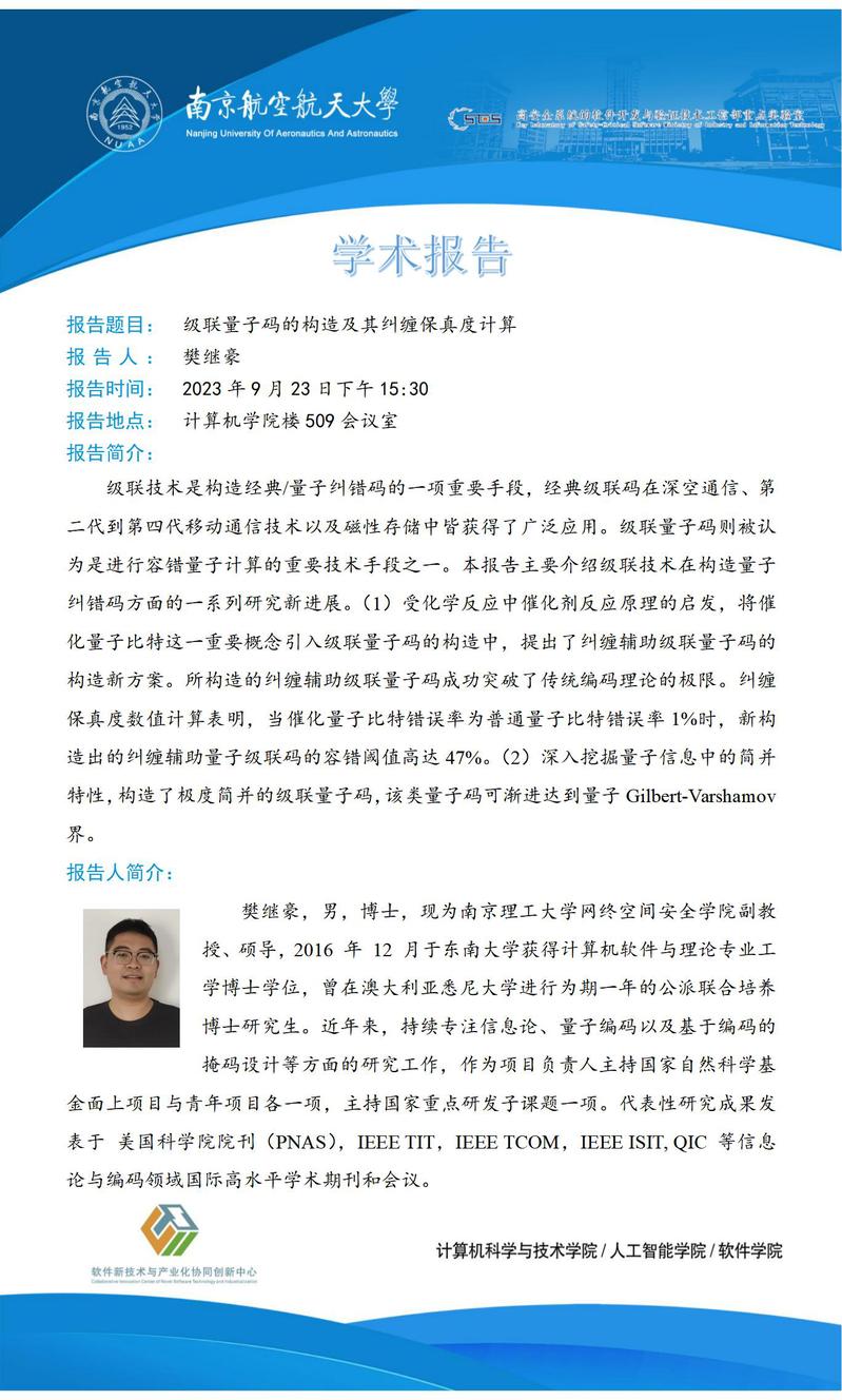 【石榴大讲堂】级联量子码的构造及其纠缠保真度计算