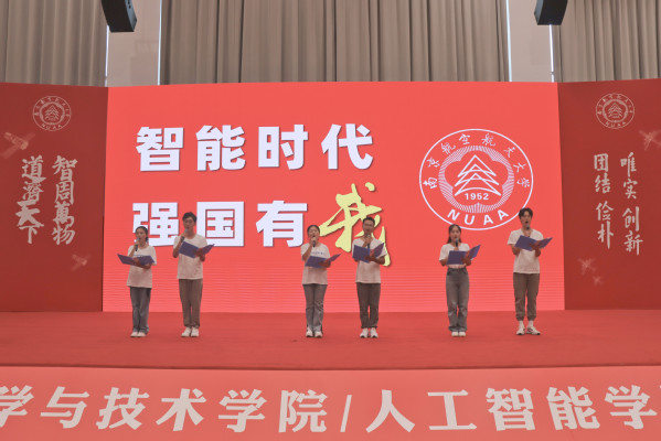 6位2023级本科生带来原创音诗画朗诵《计遇·廿少有为》,他们用铿锵有力的字句许下“智能时代 强国有我”的铮铮誓言,志愿以昂扬奋进的姿态迎接中国制造2025、“互联网+”和工业化、信息化、国防现代化融合发展的时代大潮。