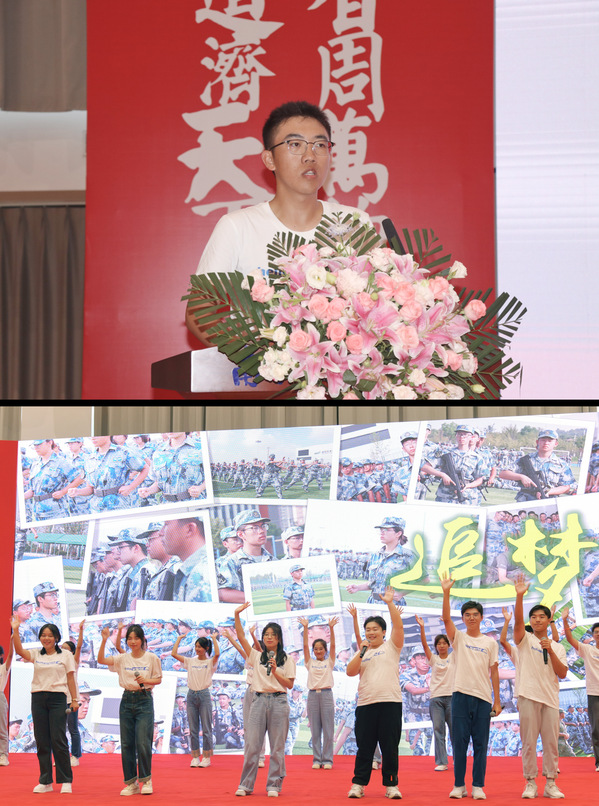 18位2023级本科生带来歌曲连唱,追光、逐梦、扬帆、启航,他们用歌声唱出对未来的美好希望,也许下“长风破浪,星辰大海”的青春约定。