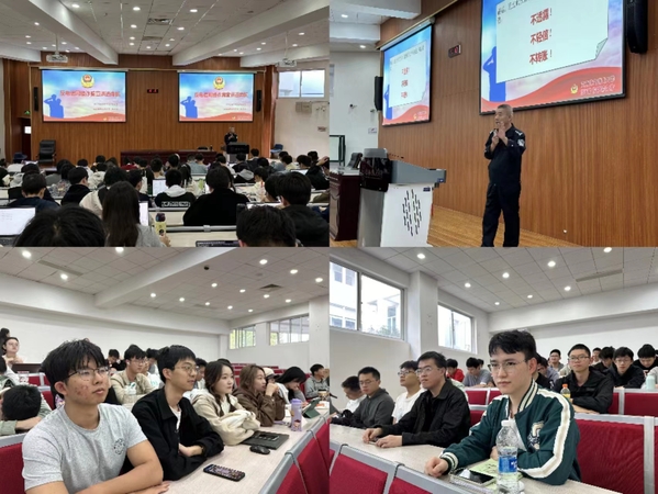 首先,娄军来通过展示统计数据揭示了近年来诈骗行为的广泛性和严重性,从发生在学生身边的鲜活案例出发,深入剖析大学生违反网络安全行为以及电信网络诈骗高发的原因。随后,他以图文并茂的方式揭示当前电信网络诈骗隐蔽化、科技化、团伙化的特点,提升同学们反诈防骗意识。接着他详细地介绍了刷单返利、冒充公检法、杀猪盘、冒充电商客服、网络游戏产品虚假交易等常见的诈骗类型,使同学们对诈骗行为的主要手段有了全面透彻的了解。最后,他为同学们传授“反诈秘籍”,即“不透露,不轻信,不转账”,提醒同学们在心理上筑起一道坚韧的防线,从根本上避免诈骗事件的发生。