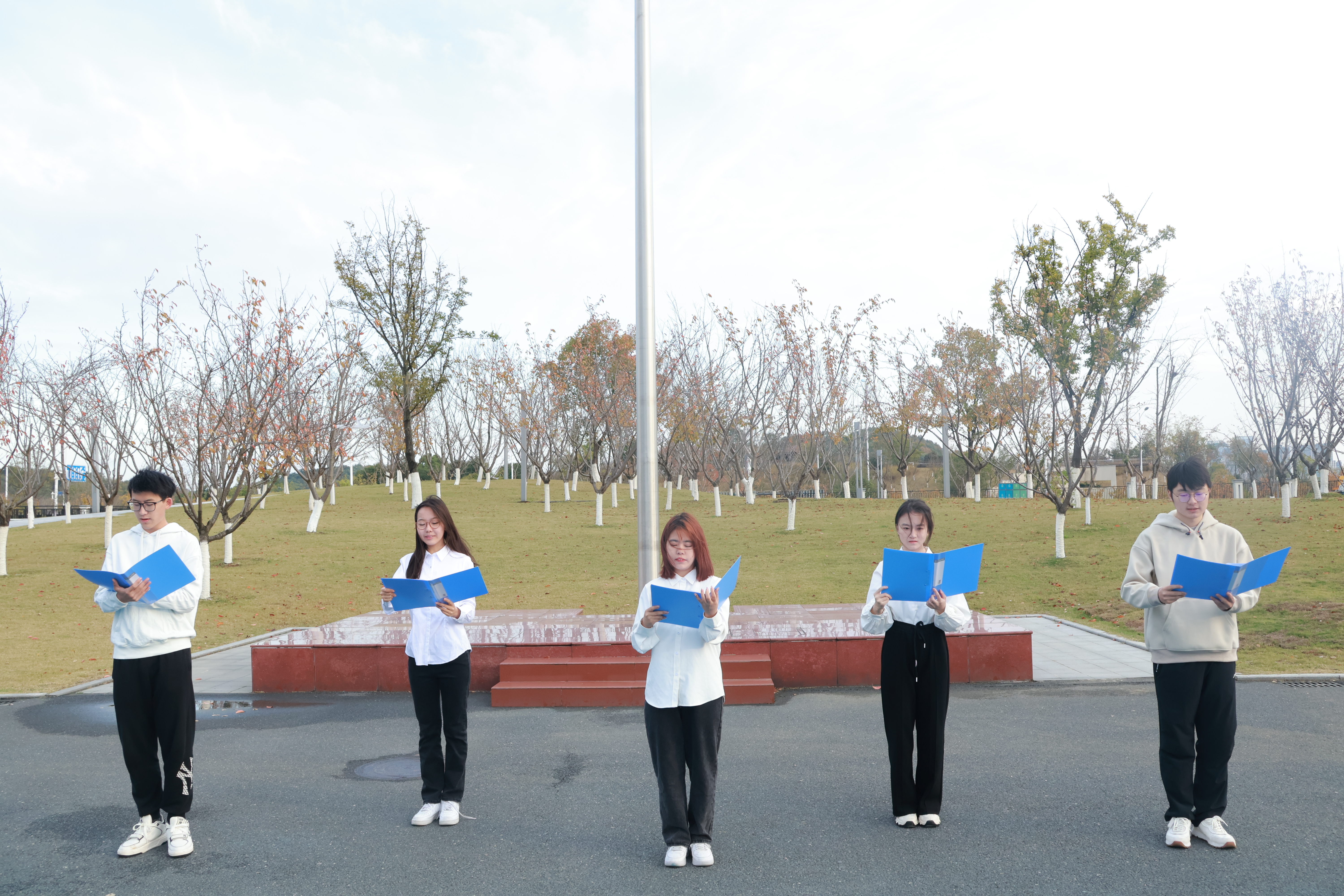 在慷慨激昂的旋律中,国旗班成员护送五星红旗入场。伴随着《义勇军进行曲》,五星红旗冉冉升起,全体人员肃立,行注目礼,齐唱国歌,向国旗致以崇高的敬意。