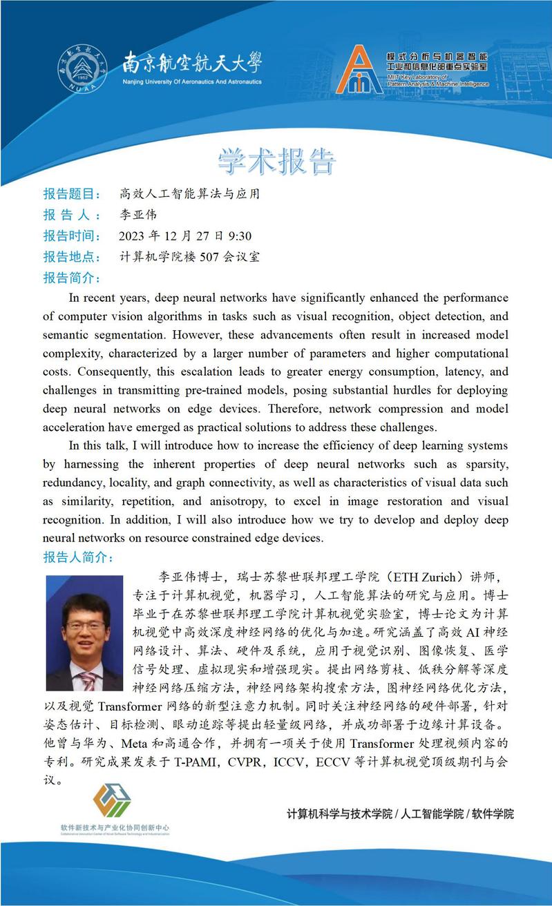 【石榴大讲堂】高效人工智能算法与应用