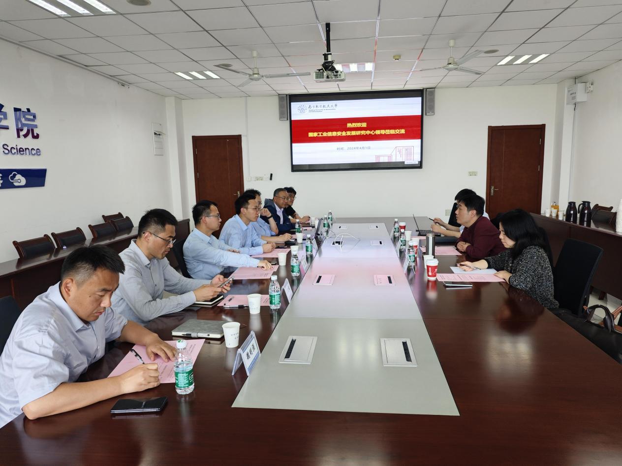 4月1日,国家工业信息安全发展研究中心副主任廖凯、监测应急所所长郭娴、标准所副所长窦克勤一行来计算机学院调研交流。计算机学院副院长黄圣君、李鑫,院长助理赵彦超以及系主任参加交流会。